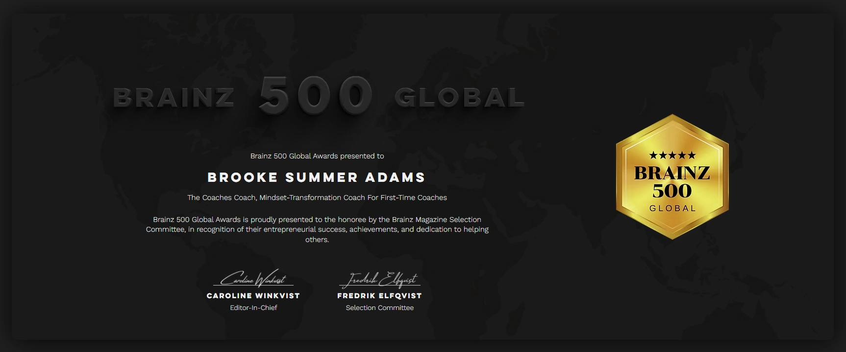 Brainz 500 Global Award 2021